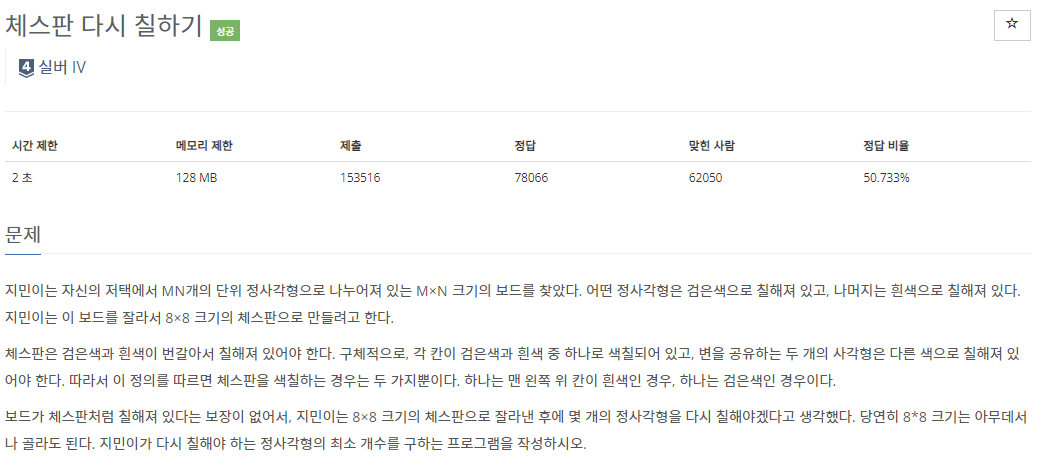 https://www.acmicpc.net/problem/1018